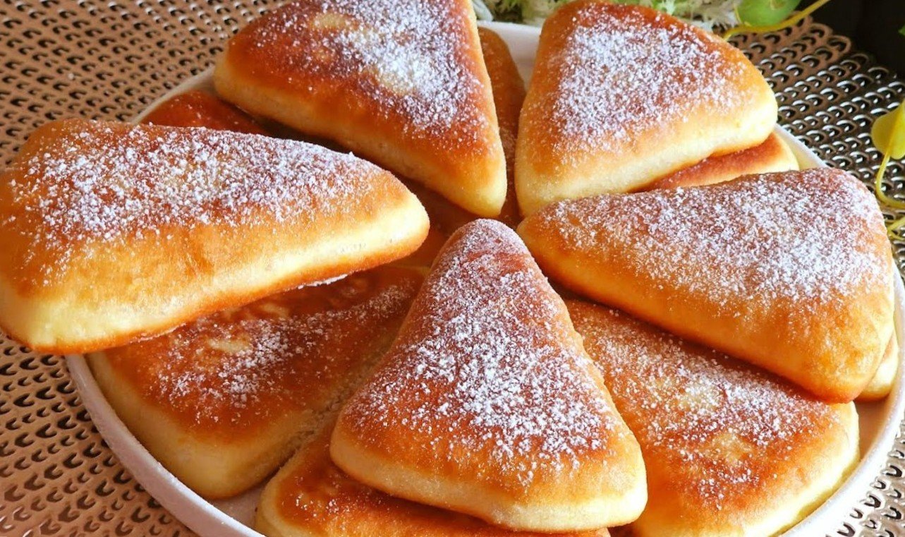 Keptuvėje reikia šildyti augalinį aliejų, įdėti trikampius iš tešlos. Kepkite bandeles ant vidutinės ugnies iki auksinės plutos.