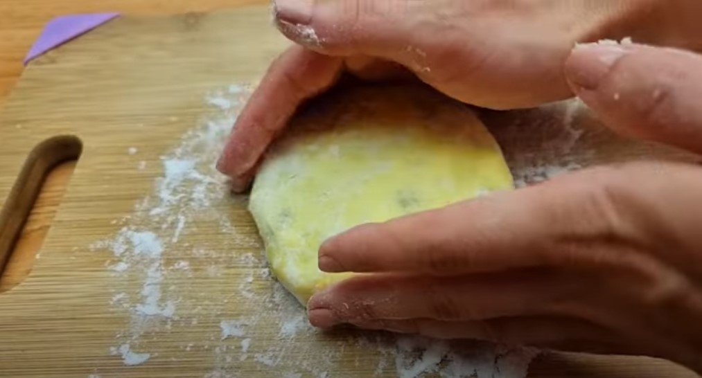 Virkite bulves pasūdytame vandenyje, pasukite tyrę su sviestu ir kiaušiniu, supilkite miltus ir sumaišykite tešlą.