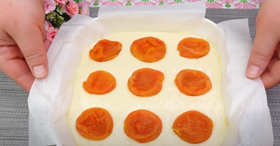 Iš viršaus galite išdėstyti džiovintų vaisių gabalus arba prinokusių abrikosų griežinėlius, uogas.