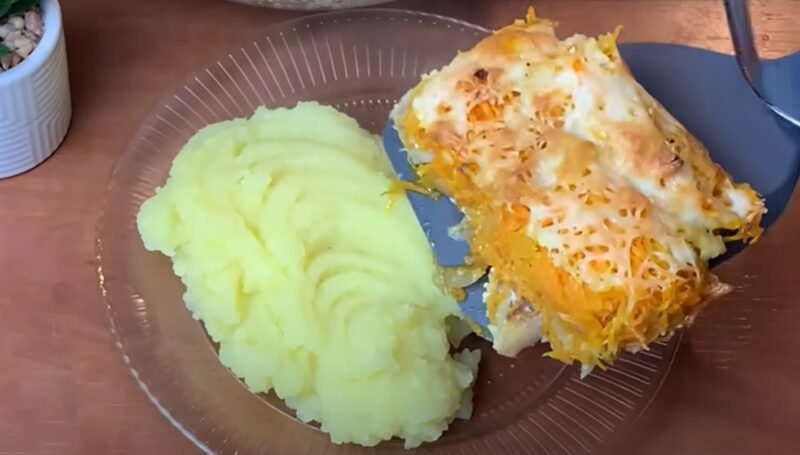 Kaip šalutinis patiekalas, ryžiai ar bulvių košė puikiai tinka šiam patiekalui. Žuvies, daržovių ir sūrio derinys maloniai nustebins svečius.