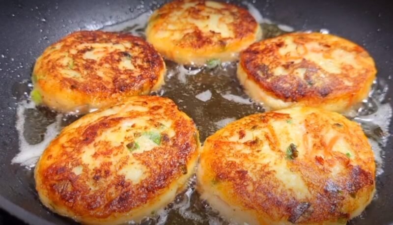 Keptuvėje mes šildome augalinį aliejų, išbandome kotletus. Kepkite pyragus iki auksinės plutos ant vidutinės ugnies iš abiejų pusių.