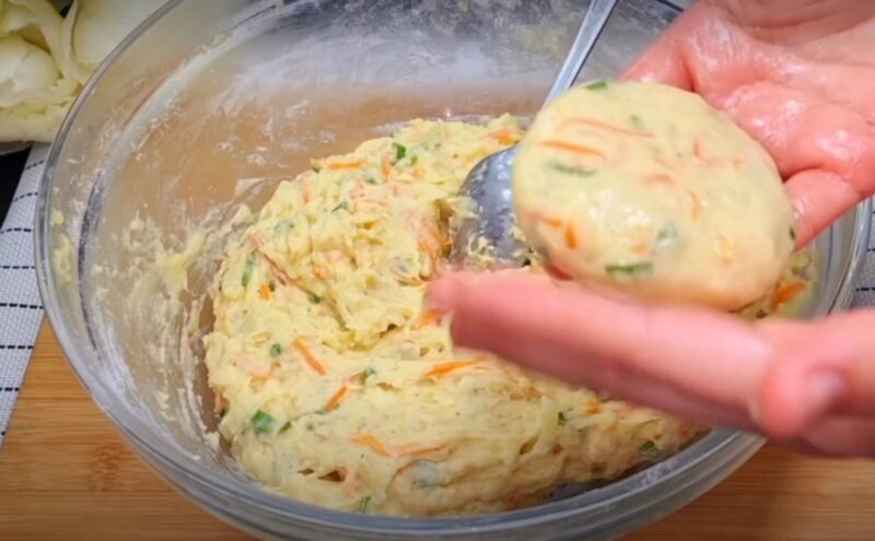 Iš gautos masės mes suformuojame mažas kotletus su rankomis, išteptomis augaliniu aliejumi.