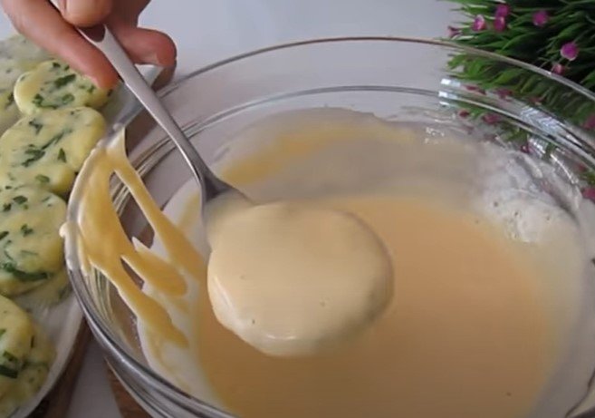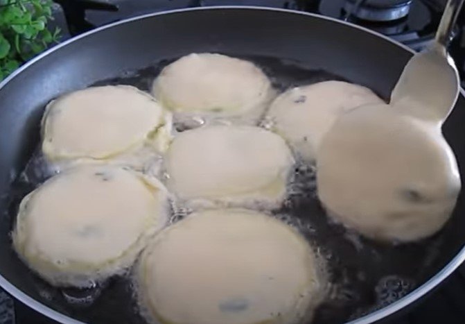Apkepkite jį su kirais tešloje ir kepkite augaliniame aliejuje. Užtepkite jį pakankamai.