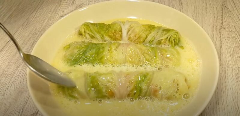 Dubenyje sudaužome vištienos kiaušinius ir sudedame tris žiupsnelius druskos, suplakite šakute. Kiekvienas ritinys yra panardintas į kiaušinį ir įdėkite jį į keptuvę su šildomu augaliniu aliejumi.