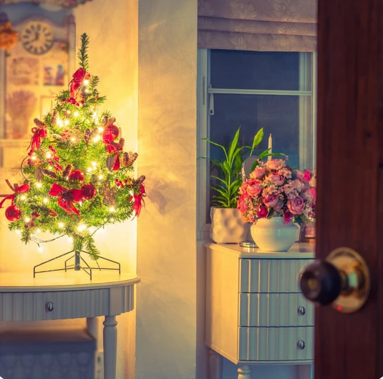 Padėkite mini Kalėdų eglutę, eglių puokštę ar žvakių apšviestą kompoziciją ant naktinio stalelio. Vos keli prisilietimai ir užmigsite tikroje Naujųjų metų pasakoje.