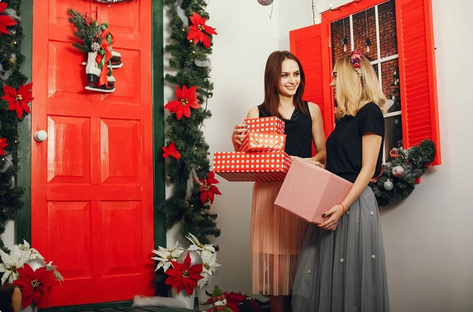 Jei turite laiptus, papuoškite juos blizgučiais ir pušų šakomis. Ant durų galite pakabinti kojines su mažomis staigmenomis – šeimos šilumos simboliu.