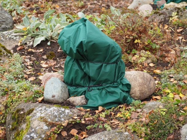 Rugsėjo viduryje pamulčiavus sausomis, biriomis medžiagomis, šiuos augalus patartina uždengti daržovių dėžėmis ir ant viršaus patiesti plėvelės ar brezento gabalėlių. Prasidėjus šalnoms, uždenkite juos stora neaustine medžiaga.