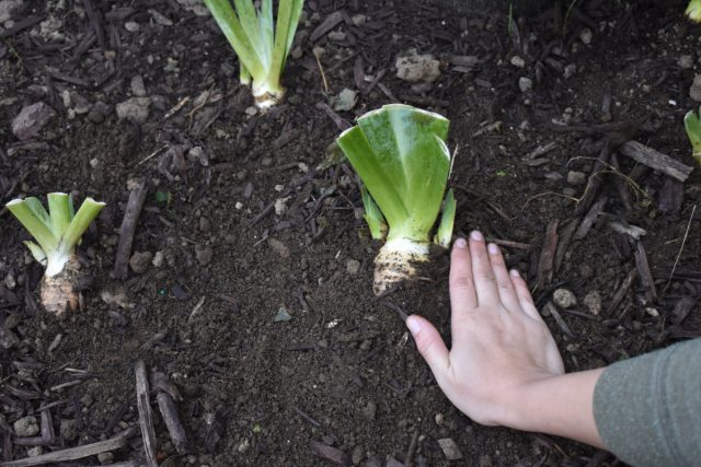 Vietovėse, kur žiemą nebūna atlydžių, tuščią erdvę aplink augalą rėmo viduje galima užpildyti sausu, biriu vazonų mišiniu. Šiuo tikslu naudojome džiovintus rugsėjinių lelijų stiebus.