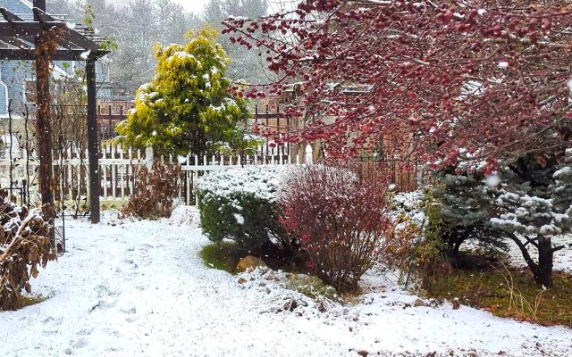 Sniegas dažnai iškrenta lapkritį, nors europinėje mūsų šalies dalyje jis tirpsta vėliau. Tai vertingas išteklius, apsaugantis augalus nuo šalčio. Daugelis sodininkų jį sutankina, kad jis neištirptų ir kad pelės negalėtų pro jį prasiskverbti. Tai dviguba klaida. Pirma, pelės gali pergraužti net kietą medieną, todėl suspaustas sniegas jų nesustabdys. Antra, sniegas išlaiko šilumą dirvožemyje dėl savo purumo ir oro kišenių, kurios išnyksta suspaustas.