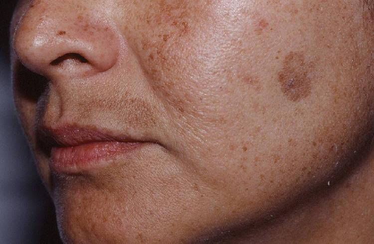 Pirminis . Tai apima strazdanas, melazmą, lentigo, Beckerio apgamus ir fotodermatozes.