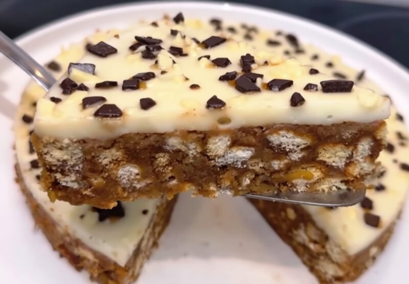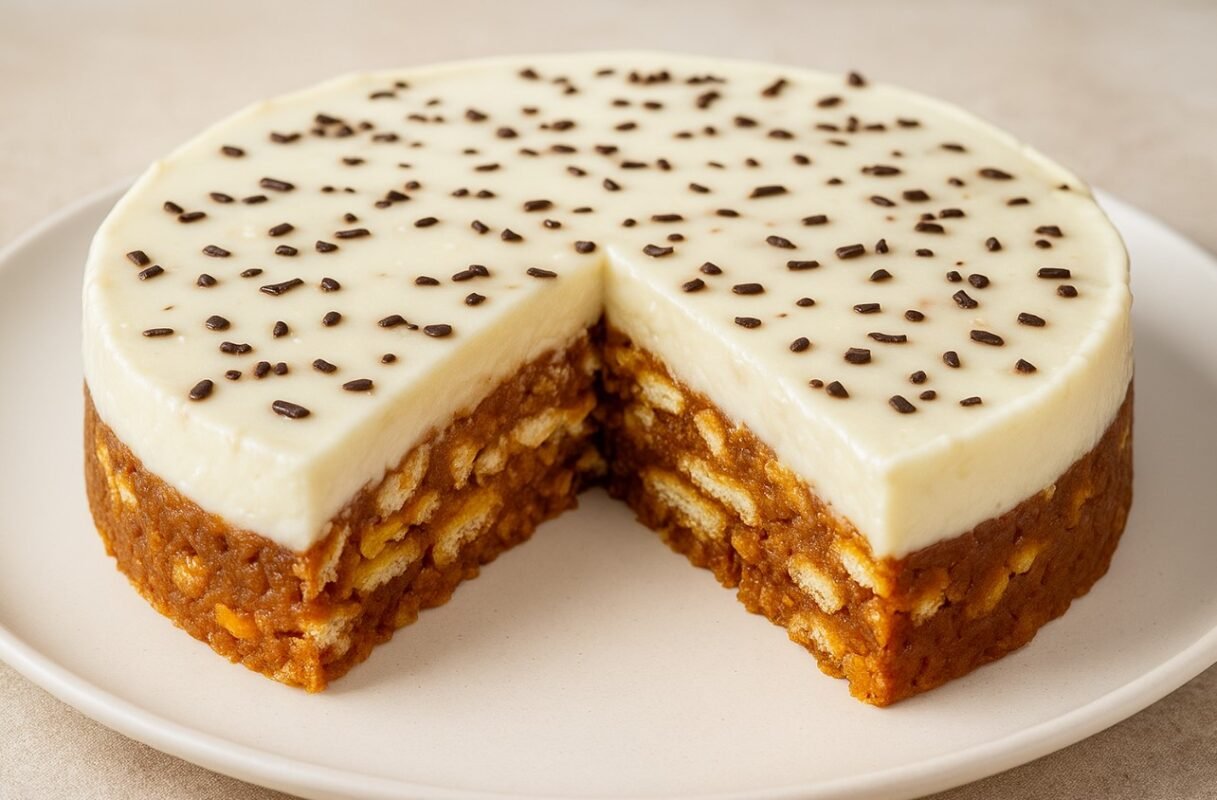 Palikite pyragą šaldytuve 4 valandas, tada išimkite konditerijos formą ir patiekite prie stalo.