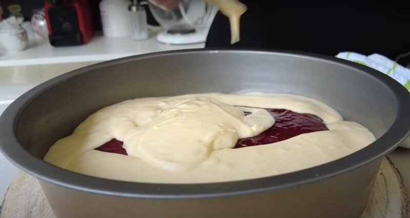 Ant uogienės sluoksnio mes supilame 1⁄2 likusio bandymo dalies, iškeptos tokiu pačiu būdu.