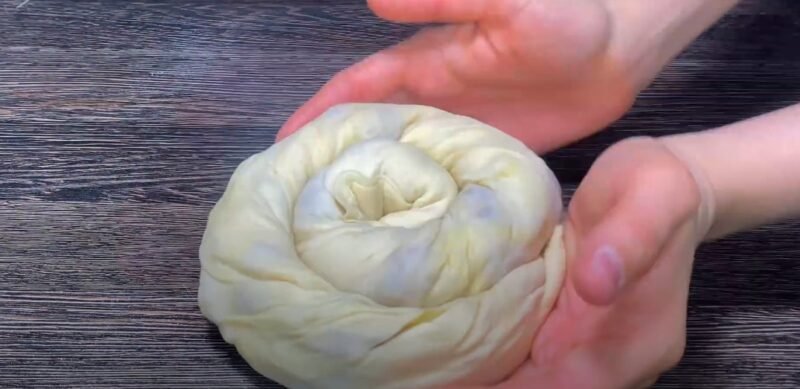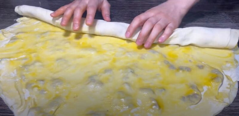 Abu sluoksniai su įdaru turėtų būti suvynioti į ritinius, kurie tada turi sulankstyti sraiges.