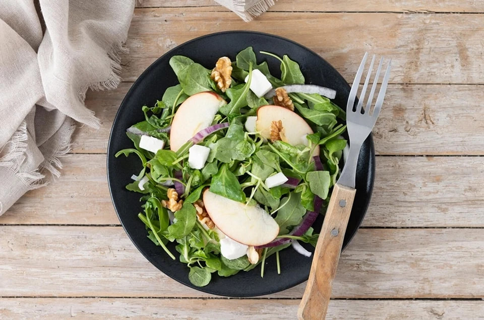 Padažas: alyvuogių aliejus, balzaminis actas, medus ir apelsinų sultys (po 1 valgomąjį šaukštą kiekvieno).