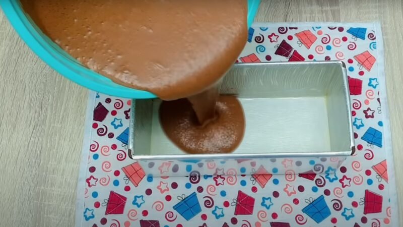 Sutepkite kepimo formos šonus ir dugną (22x10x10 cm) su sviestu. Dugnas yra padengtas pergamentu, supilkite į tešlos formą.