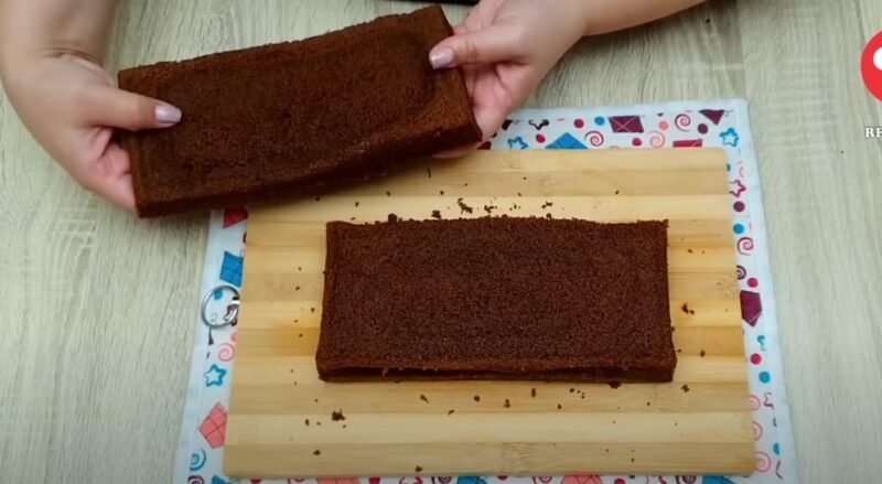 Mes išimame sausainį iš formos, nupjauname viršų. Mes nardome sausainius dviem kryžiaus žygiams.