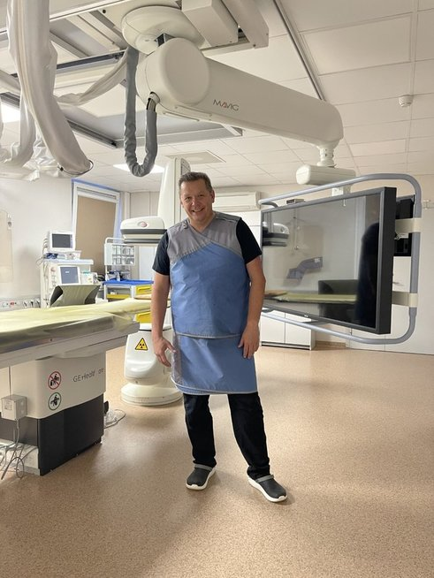 Į pokalbį atskubėjęs ką tik po operacijos, išsivadavęs iš kilogramus sveriančių apsaugų – švino „šarvų“ ir nusibraukęs prakaitą gydytojas prakalbo, kad rutinai čia vietos maža, nors kasdien atliekantis lyg ir panašias operacijas.