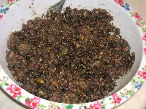 - Sumaišykite visus ingredientus ir sutrinkite juos trintuvu.