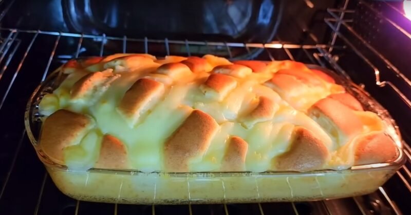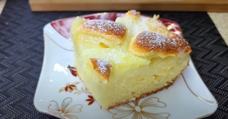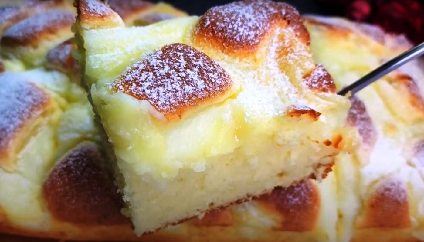 Prieš naudojimą pyragas turi būti šiek tiek atvėsintas, papuoštas cukraus pudra. Pasirodo, kvepiantis pieno pyragas iš paprastų ingredientų.