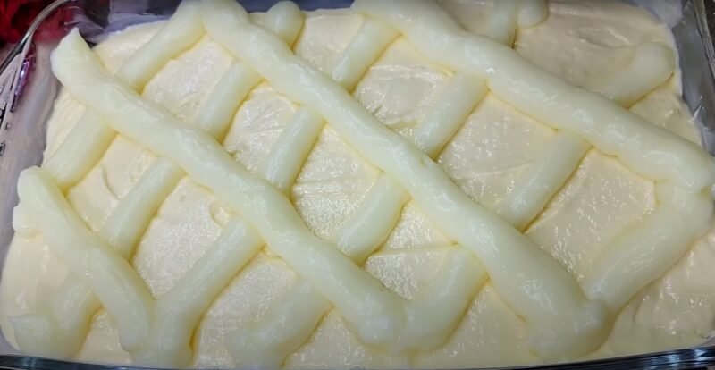 Formą rekomenduojama iš anksto sutepti sviestu. Konditerijos maišelyje mes perkeliame atvėsintą kremą, sukurkite kremo modelį ant bandymo paviršiaus.